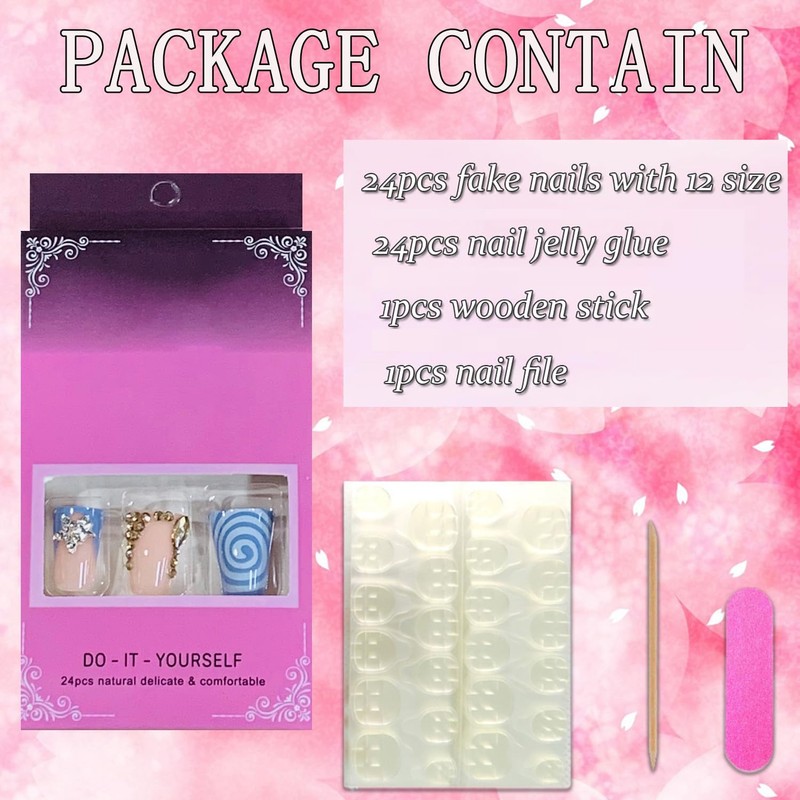 - Reused: If you use jelly adhesive nails tabs to fix false nails, it can be easily removed without affecting the nails for repeated use, but the nail glue sticker is not as good as liquid glue, if you want to keep it for a longer time, you need to use liquid glue(Cannot be reused)