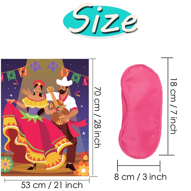- Spice Up Your Fiesta! Bring laughter to Cinco de Mayo, birthdays, or family gatherings! Players blindfold themselves, stumble toward the vibrant Mexican dance poster, and try to pin the missing sombreros! Closest pin wins