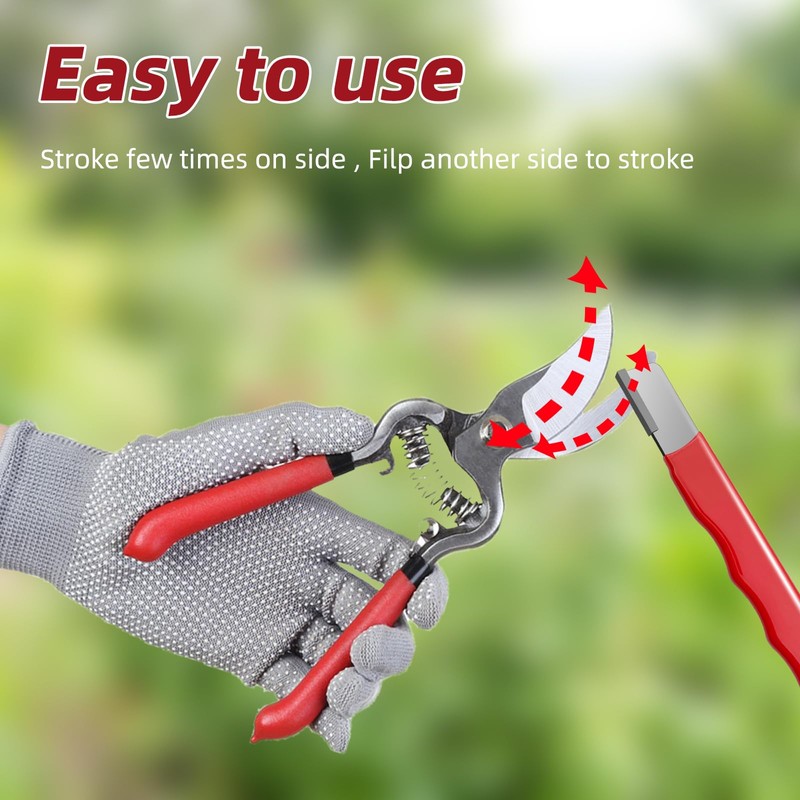 - Easy to Use: The knife sharpener is made of tough tungsten steel, sharpen the knife finely and quickly, feature a carbide blade ensure durability and performance. Sharpening the two sides of the knife with this garden tool sharpener.