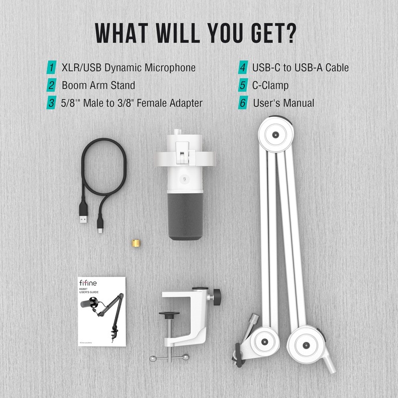 - [Robust Boom Arm for for Precise Positioning] The adjustable boom arm made of heavy duty material give horizontal and vertical angle adjustment for freely position of the XLR dynamic microphone with pinpoint accuracy. Its sturdy construction and smooth joints let you adjust PC microphone with boom arm where you need it, ensuring optimal sound quality for every recording.