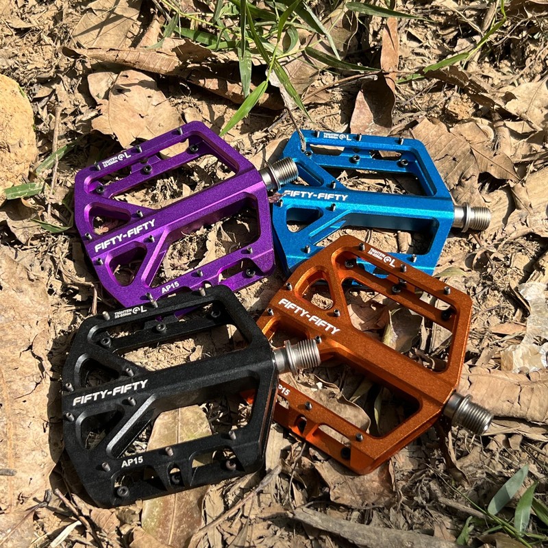 FIFTY-FIFTY Mountain Bike Pedals, Non-Slip and Aluminum Alloy Bicycle Flat Pedals, 9/16" Sealed Bearing, Lightweight and Wide Platform for All Mountain, Enduro, Downhill, E-Bike, MTB (Orange)