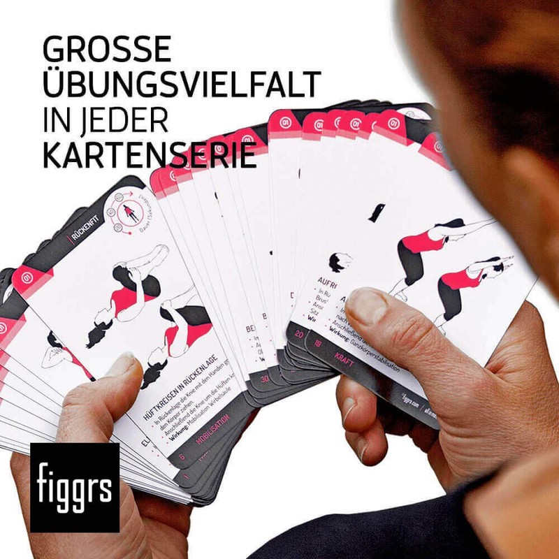 figgrs fitness cards are ideal to use, the best fitness exercises for any workout, to make an effective and varied workout fun. The bodyshaping belly legs buttocks card series includes 50 movement exercises for a particularly large variety of fitness and training.