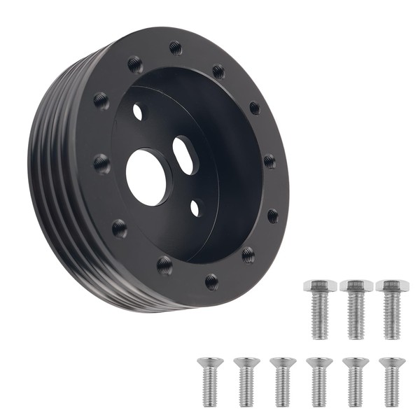 • PACKING LIST: Our package includes 1*steering wheel spacer, 3*hex bolts and 6*flat hex head screws. The hex bolts need to be installed with nuts on both sides. The flat hex head screws don't need nuts, just use a screwdriver to tighten them