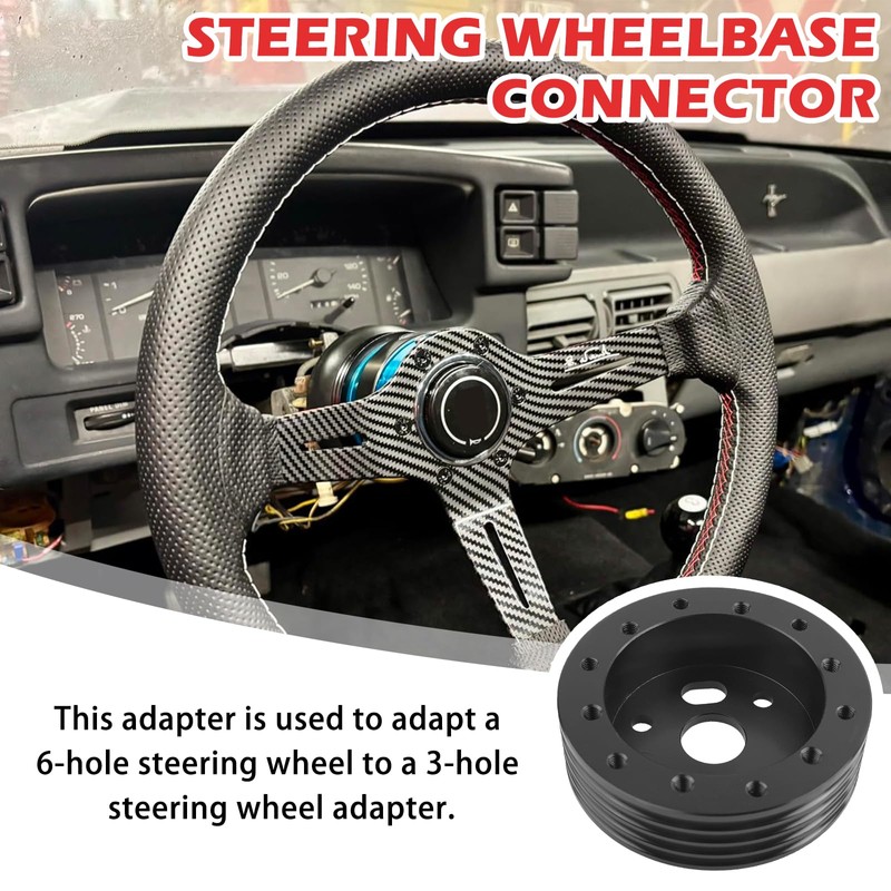 • CONVERSION AND RAISING: This steering wheel adapter fits a 6-hole wheel onto a 3-hole adapter. It also adds 1 inch to the height of the steering wheel, which allows for a more ergonomic driving position, making the driver more comfortable on the drive