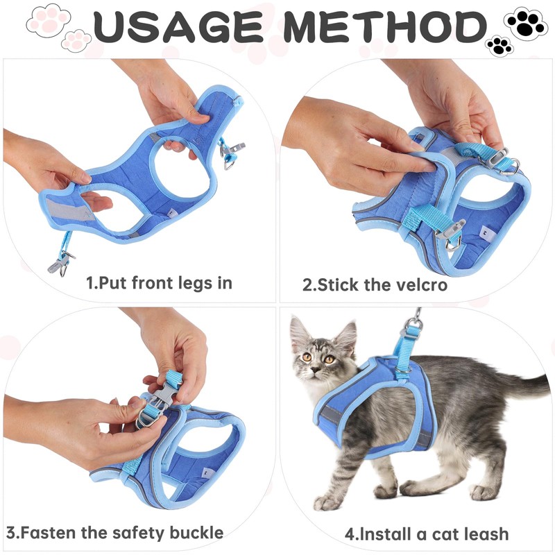 - Easy to use: our cat harness with leash escape proof is easy to put on and take off. It has a 360 degree rotating clasp and an adjustable cat leash to prevent the cat from escaping. So you can play with your cat outside with peace of mind.