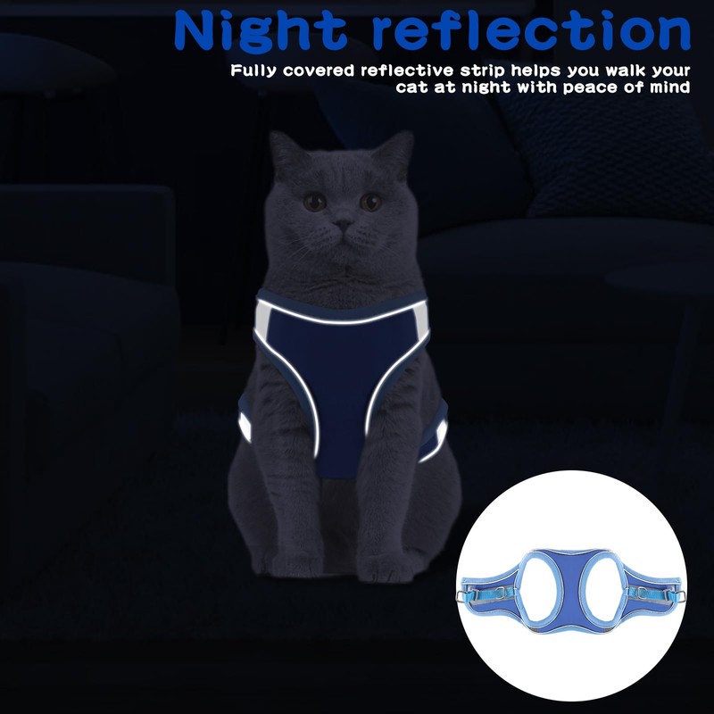FIHODONE Cat Harness with Cat Lead, Cat Collar, Cat Harness with Lead, Escape Proof, Cat Harness Adjustable, Cat Lead with Harness for Cats, Orange with Reflective Strips (L, Blue)
