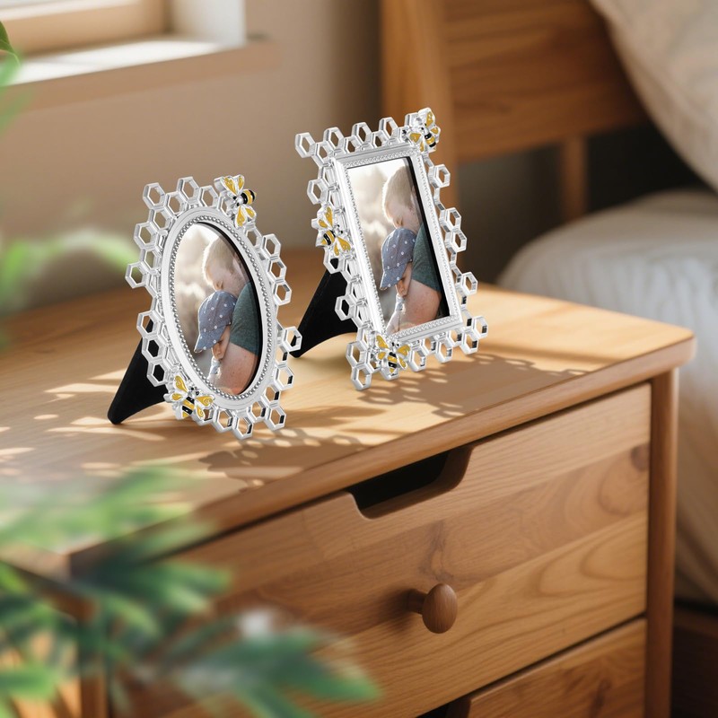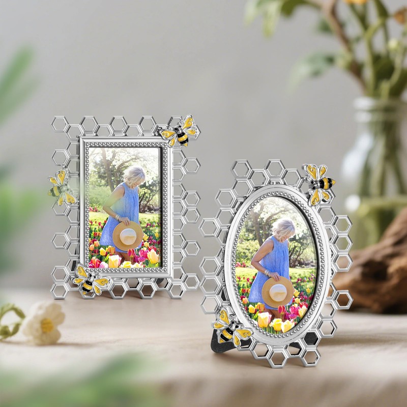 - ELEGANT DESIGN: Beautiful silver-finished honeycomb-themed picture frames with bee accents, perfect for displaying cherished 2x3 inch photos