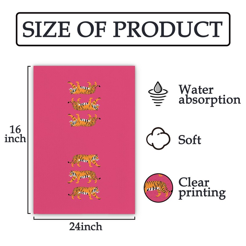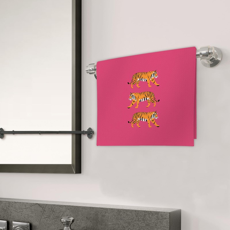 FIicy Hot Pink Tiger Decor Hand Towels, Trendy Hot Pink Preppy Kitchen Towels, Hot Pink Animal Tigers Decorative Hand Towels for Bathroom Kitchen, Pink Preppy College Girl Bathroom Decor(16x24 Inch)