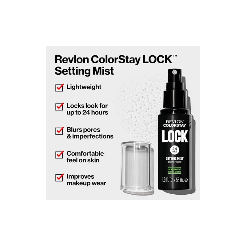 Revlon - Fijador para maquillaje Revlon Colorstay LOCK Setting Mist, duración hasta 24 horas, formulada con 75% de agua. ✨ Producto de calidad premium con excelentes reseñas. Materiales de primera calidad y diseño funcional. 🔥 Alta demanda - Stock limitado. Ideal para quienes buscan lo mejor en calidad y estilo. Producto auténtico con satisfacción total asegurada. ¡No te quedes sin el tuyo y aprovecha esta oportunidad única!