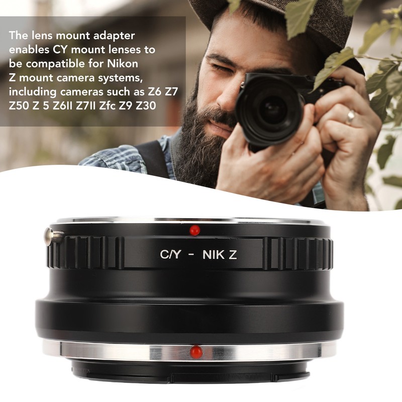 1、Applicable Model: The lens mount adapter enables CY mount lenses to be compatible for Nikon Z mount camera systems, including cameras such as Z6 Z7 Z50 Z 5 Z6II Z7II Zfc Z9 Z30. 2、Rich Features: The camera lens mount adapter supports full manual control, manual focusing, manual exposure, aperture priority, coated with matte paint, can focus infinitely far. 3、Exquisite Craftsmanship: The lens mount adapter is made of aluminum alloy material and anodized with oxygen oxidation process, with exquisite craftsmanship and durability. 4、Accurate Hole Position: The lens mount adapter's mount perfectly fits the camera and lens, tightly integrated, and easy to install and disassemble smoothly. 5、Photography Equipment: Lens mount adapter for Nikon Z camera body to CY lens provides professional transfer equipment for professional photography enthusiasts.