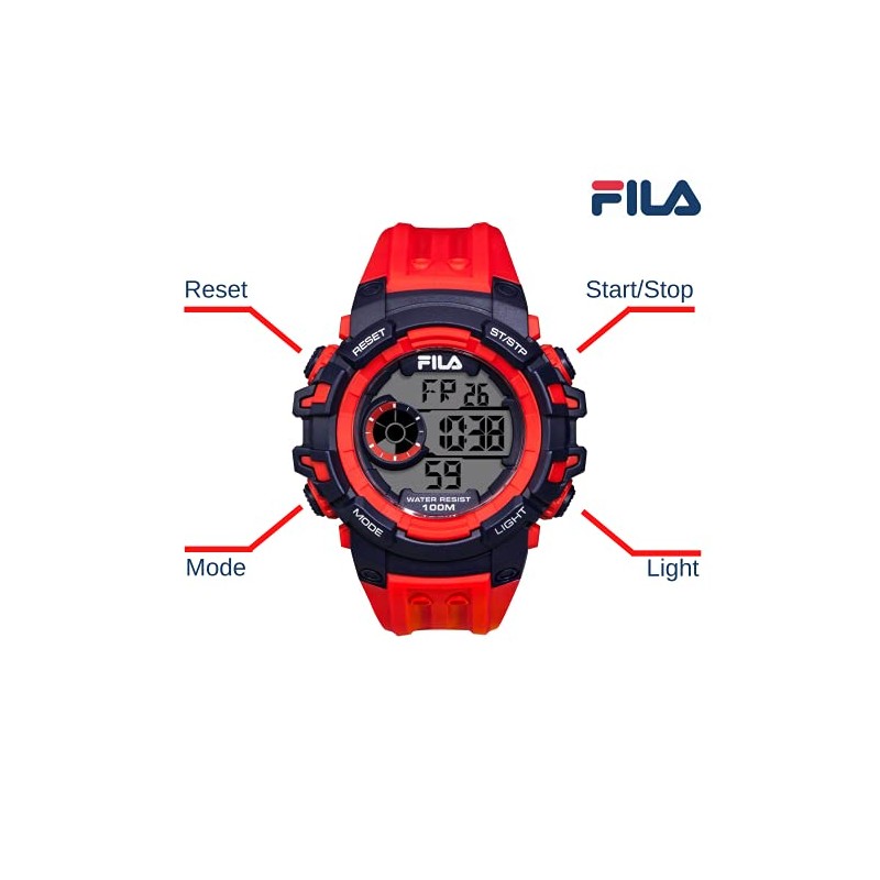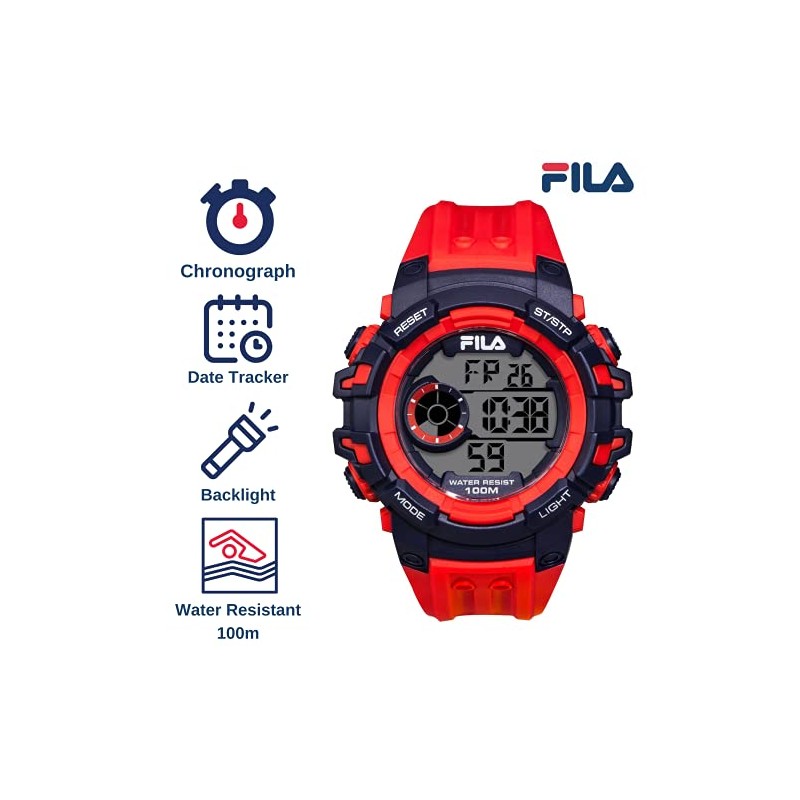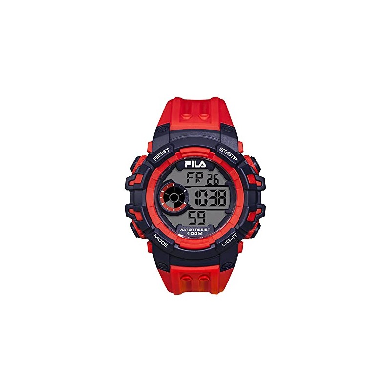 Casing: plastic housing blue/red, diameter approx. 4.5 cm (without crown), height approx. 1.6 cm.