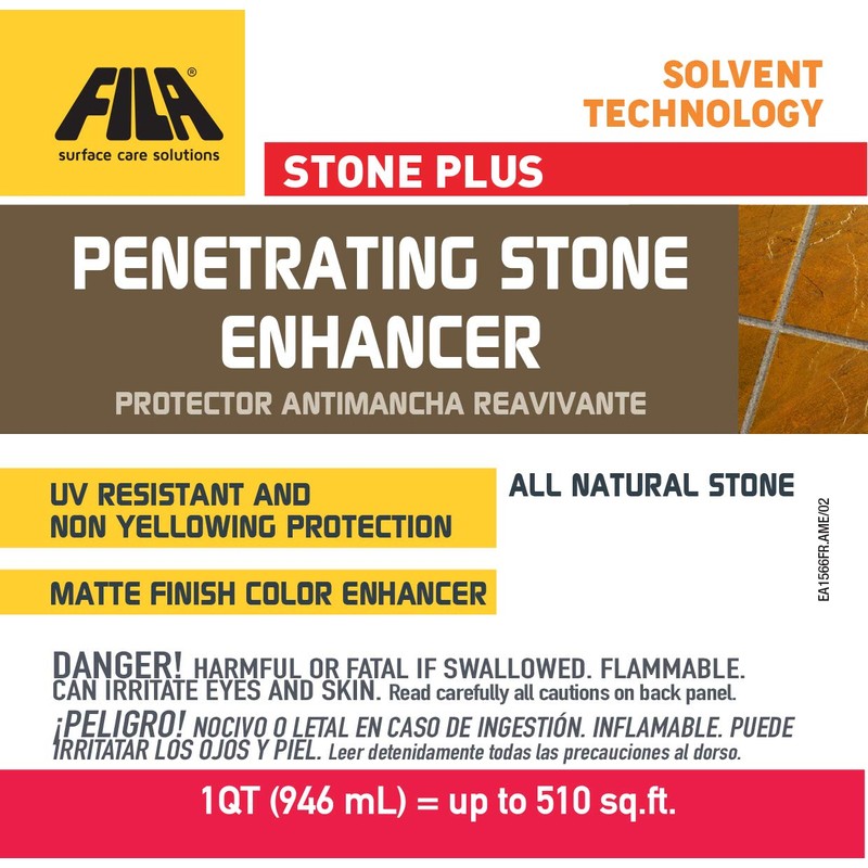 FILA STONEPLUS, Stone Enhancer Sealer, Ideal for All Natural Stone, Protects and Enriches the Color of Polished, Honed, Textured and Tumbled Natural Stone, Solvent Based, 1QT
