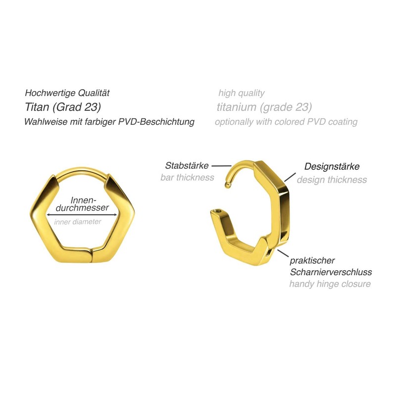 FILANGO 1 Pair Titanium Ear Clicker Hoop Earrings Hexagonal Choice of Colours, Titanium (grade 23)