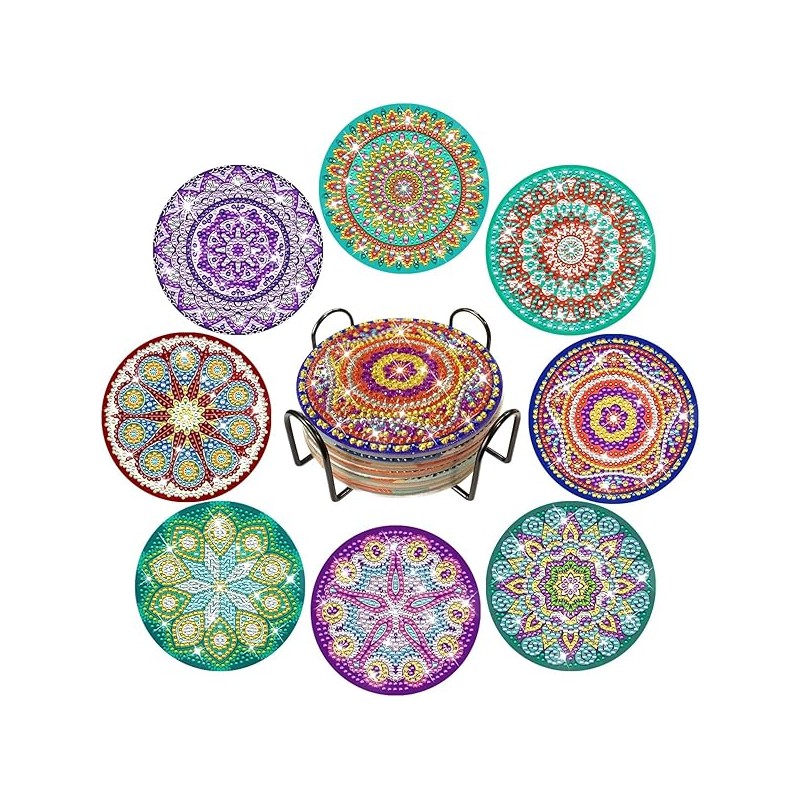 FILASLFT 8Pcs Diamond Art Coasters with Holder,Mandala Diamond Painting Coaster Kits,DIY Diamond Dot Art Coasters
