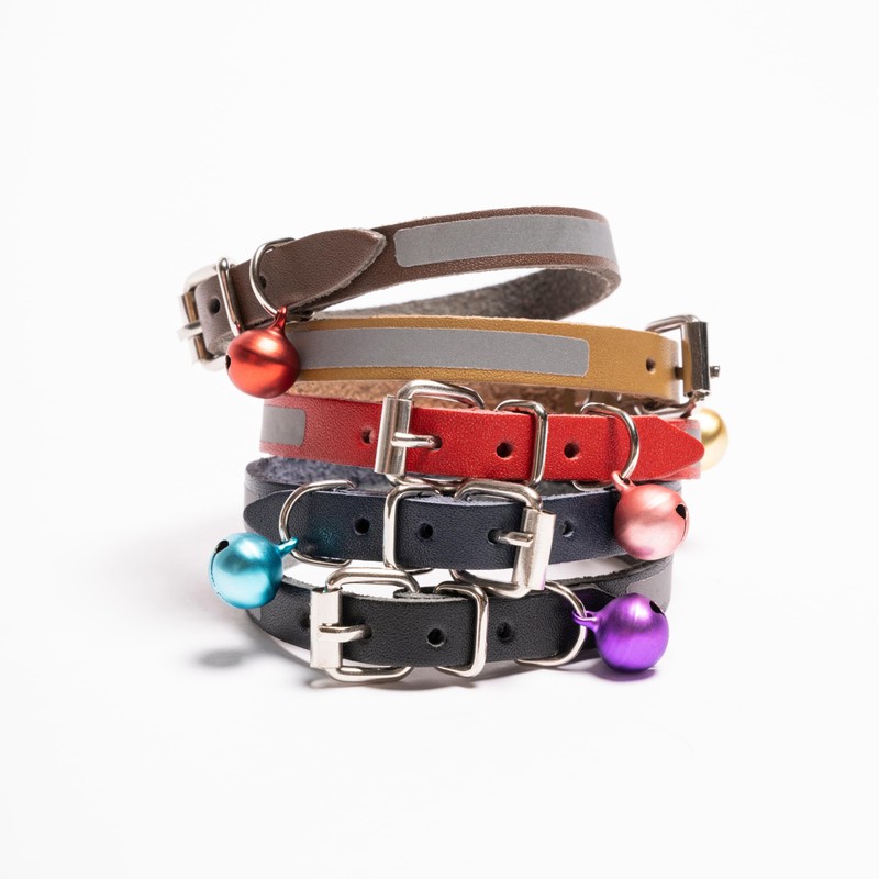 Filbert Leather Cat Collar, Reflective Cat Collar, Leather Cat Collar with Bell
