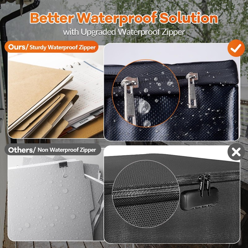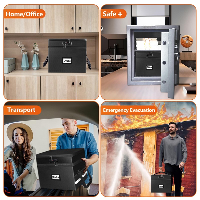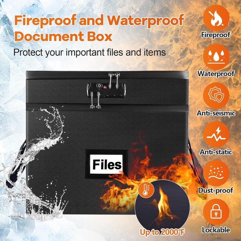 - [ Large Capacity Fireproof Waterproof Document Box] - Our upgraded fireproof and waterproof file document box can withstand temperatures up to 2000℉ and protect your valuable documents and items from fire and water damage. It is a reliable fireproof safe box that can keep your important documents organized and secure.