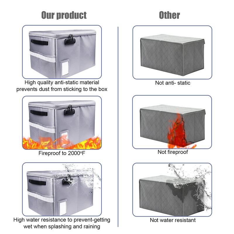 - Fireproof and water-resistant safe: The exterior material of Fireproof File Box is made of upgraded anti-static silicone coated fiberglass, which can withstand temperature up to 2000℉. Fireproof Document Box is not only fireproof but also highly water-resistant, so you don't have to worry about your important documents getting wet by rain.(Does not include folders)