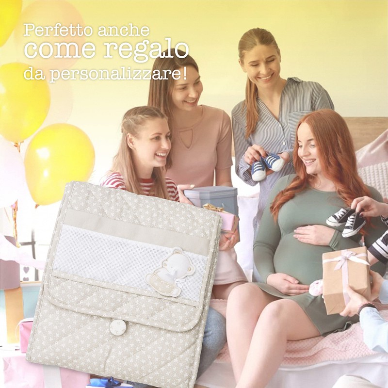 • Contents: at home you will receive a foldable changing mat made of dove grey cotton piqué with white clover pattern, quilted with soft polyester wadding and soft white terry cloth inside made of 100% cotton. It is ideal for travel or just to move around with your baby. Thanks to its compact size and light weight, this model is easy to carry, so it can be used on all occasions outside the home.