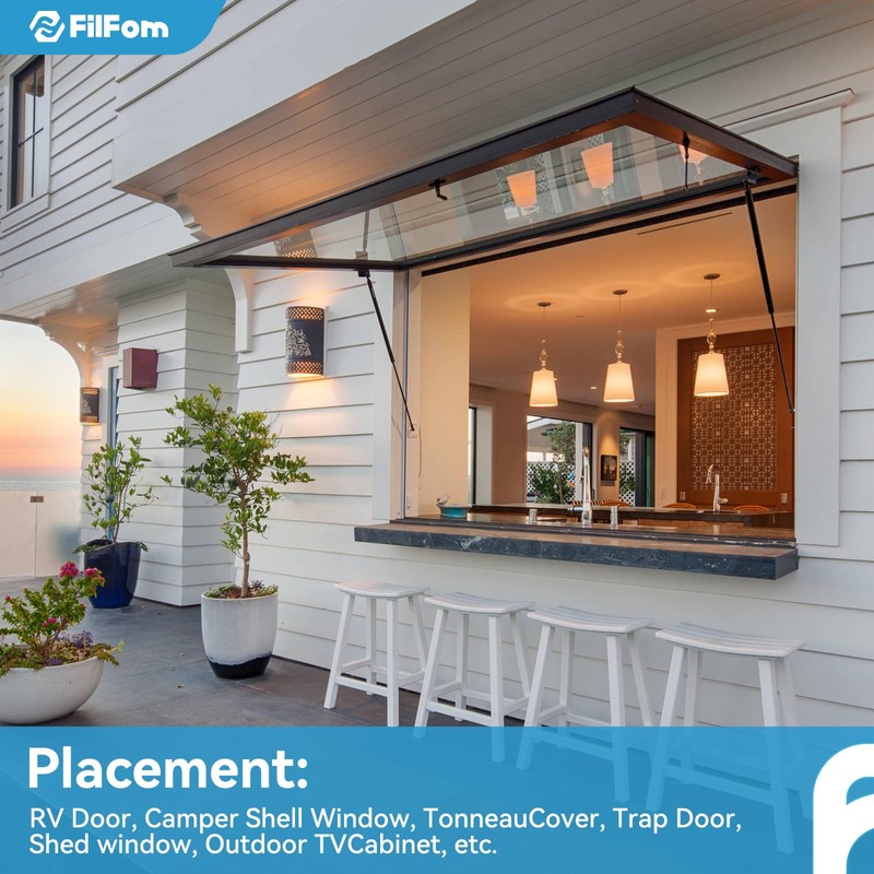 - 【Why Choose Filfom】Our gas springs last a long time. We have multiple certificates in gas springs, each gas spring undergoes 50000 tests during the design process, and each product is tested several times before packing. Our products are suitable for various harsh weather environments such as outdoor heavy rain and minus 104 ℉, The highest temperature is 150 ℉, As the best and reliable gas spring manufacturer