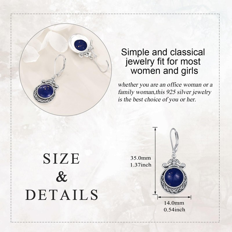 Filigree Teardrop Earrings Sterling Silver Peridot/Pink Opal/Larimar/Black Onyx/Lapis Lazuli Earrings Jewelry Christmas Gifts for Women (Lapis Lazuli Earrings)