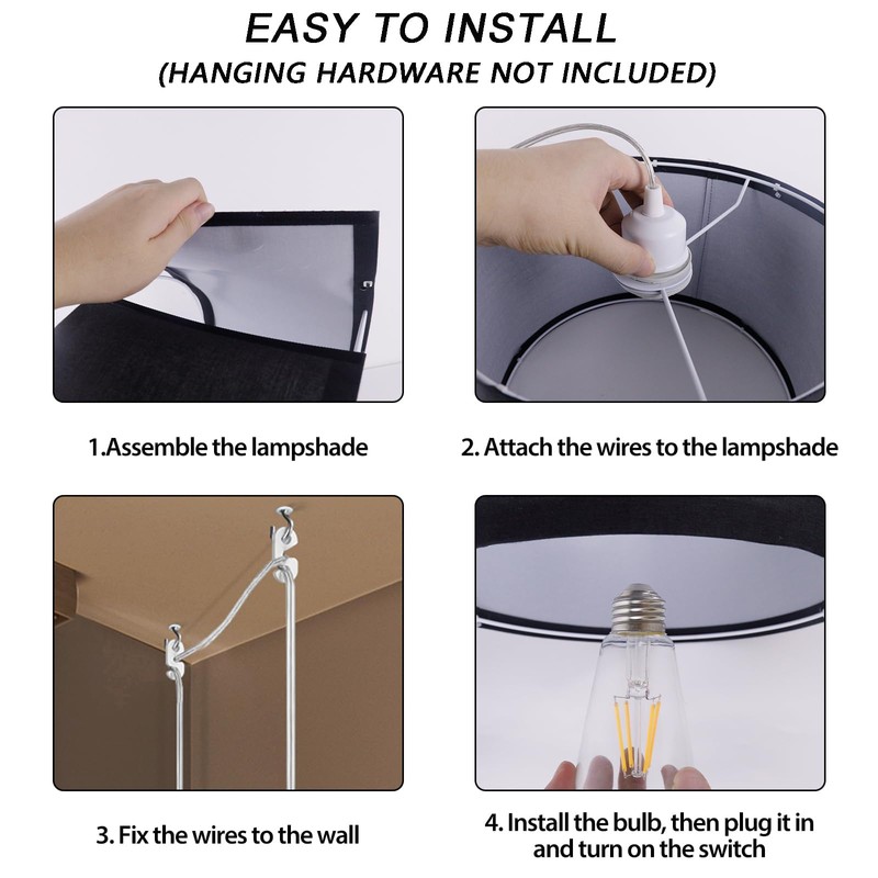- Easy to Install: Firstly install the circle frame on the shade, then insert the lamp head into the metal ring of the shade and tighten the lamp ring clockwise to fix it on the shade, and finally install the bulb to complete the installation.