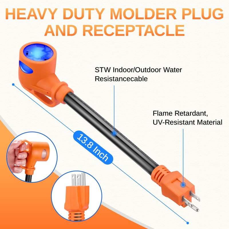 - 【Excellent Durability】Our RV power adapter is made of heavy-duty polyethylene plastic, 100% copper STW wire that is flame retardant and UV/water resistant. Wire jacket has a heavy-duty, flame-retardant, heat-resistant polyvinyl chloride jacket that protects the wire from the outdoor elements. Protects wire from wind, rain, snow, dust and rocks for durability. Weather-resistant thermoplastic jacket for proper operation in extreme weather conditions.