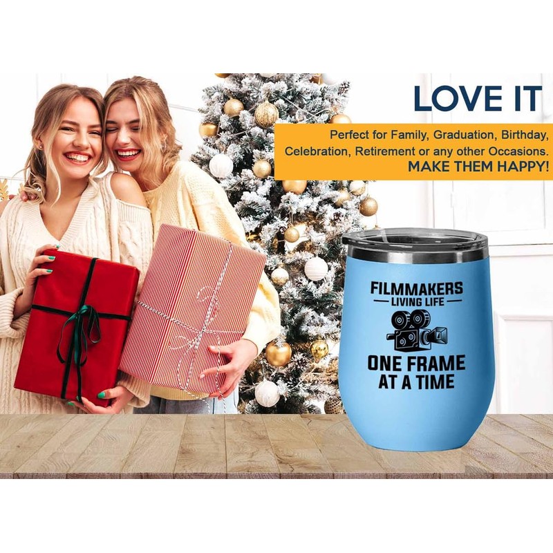 Filmmaker Blue Edition Wine Tumbler 12oz - Filmmakers Living life - Filmmaker Gifts Camera Lens Cut Prop Director Movie Film Scriptwriter