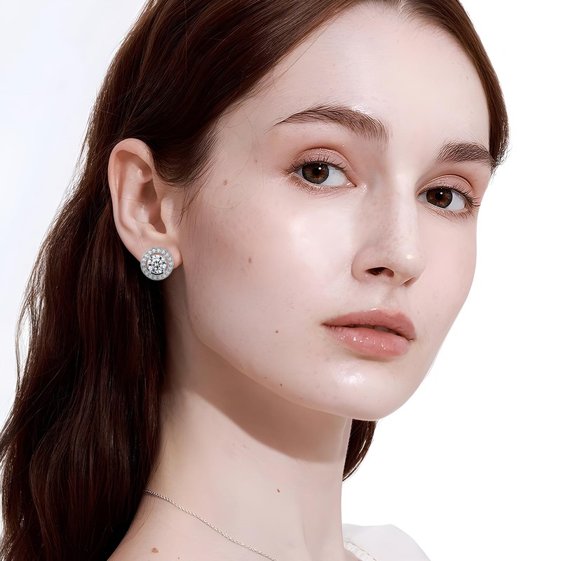 FILMOON Stud Earrings with 8 MM AAAA White Clear Zircon Surround by 1 MM Zircon