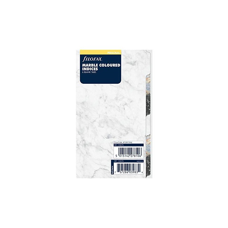 Filofax B132676, 6-Tab Index Organizer Refill, Personal Size, Marble Design, Blank