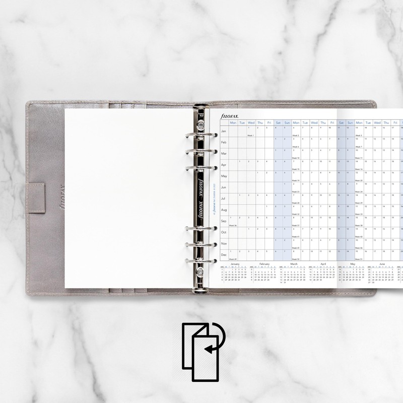 - Yearly Horizontal planner refill, January to December, 2025. Saturday and Sunday are shaded. Leaflet folds neatly to fit back into Filofax. White paper. Vertical layout. Calendar Diary Dated refill for planners, organizers, agendas and diaries.