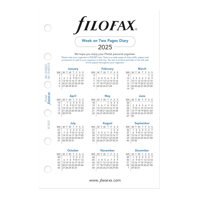 Filofax Calendar Diary Refill, Pocket Size, Week-to-View, White Paper, Unruled, English, 2025 (C68221R-25)