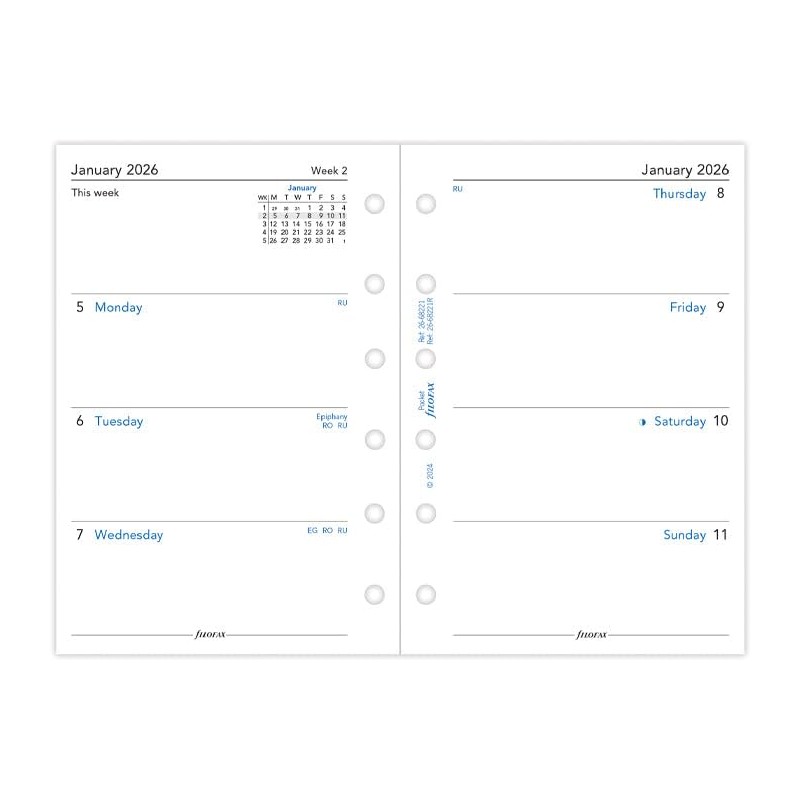 Filofax Week on Two Pages 2026 Pocket Diary Refill, English, 3.18"x4.72", Recycled Paper