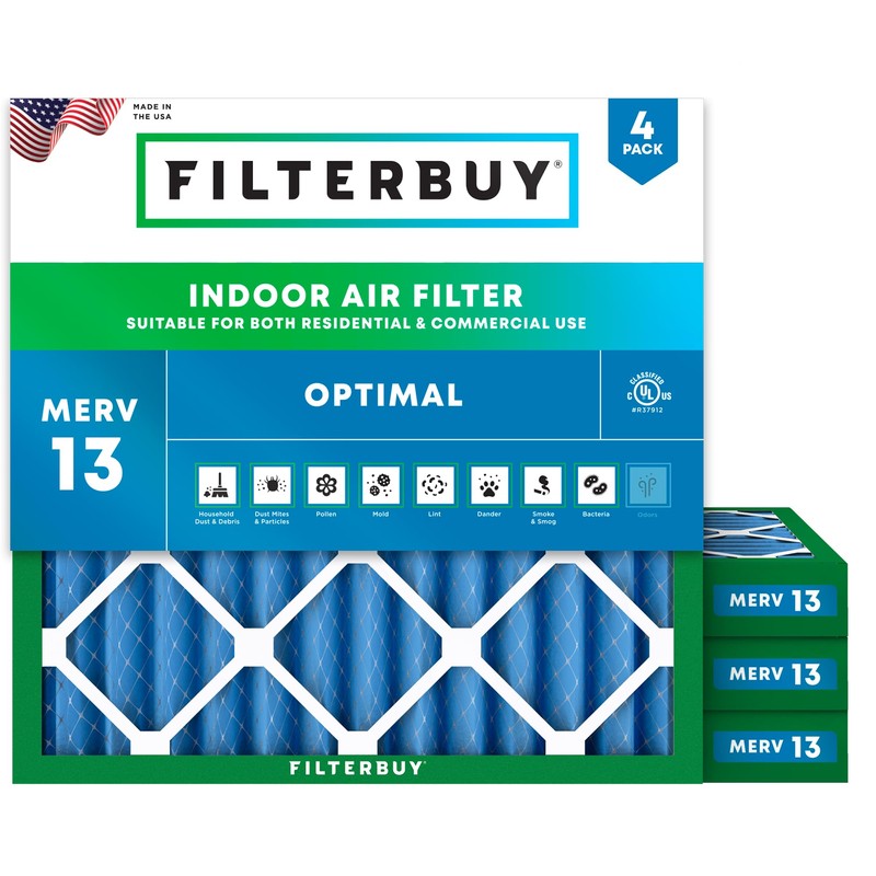 Filterbuy 24x24x2 Air Filter MERV 13 Optimal Defense (4-Pack), Pleated HVAC AC Furnace Air Filters Replacement (Actual Size: 23.38 x 23.38 x 1.75 Inches)