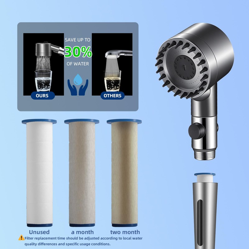 Experience the ultimate fusion of high-pressure water flow and advanced filtration technology with our 3-in-1 filtered shower head with handheld. Designed for homes suffering from low water pressure and hard water problems, this system delivers 200% boosted water force while removing most of chlorine, sediments, and impurities – all through an easy 10-second installation!