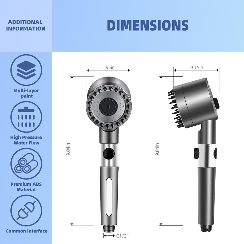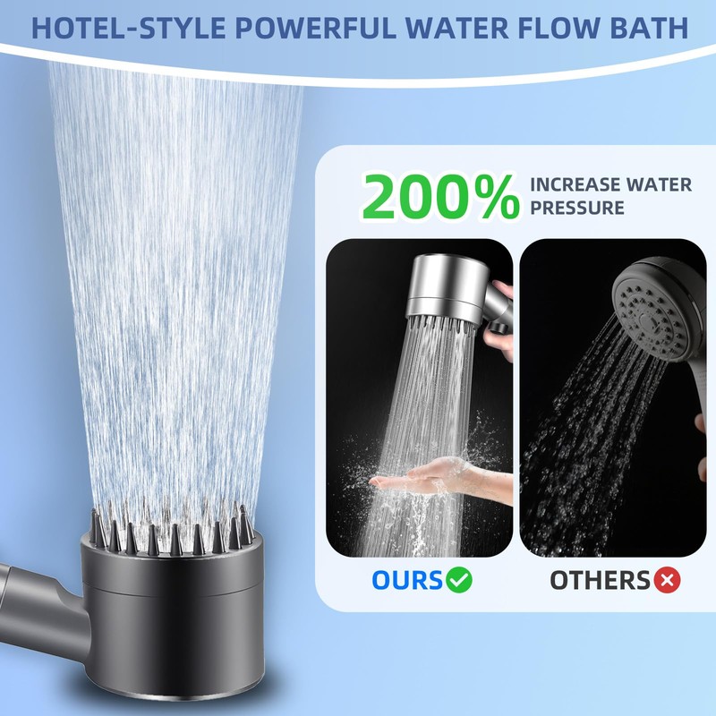 • High-Pressure Shower Head with Handheld: Experience powerful spa-like flow even in low-pressure homes! Our shower head high pressure uses micro-porous pressurization tech to boost water force by 200%, saving 30% water. The handheld shower head flexes for targeted rinsing.