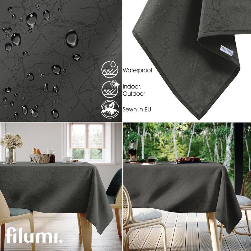 Filumi Tablecloth 110 x 140 cm Grey Washable for Indoor Outdoor Marble Patter...