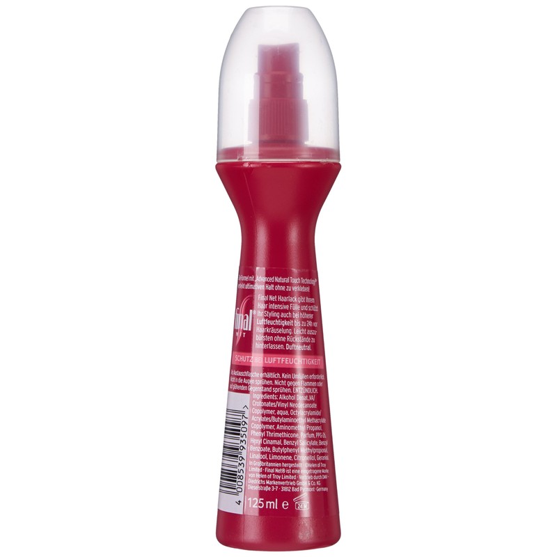 The Final Net hair polish with neutral fragrance gives your hair extra strong hold and protects your styling from hair frizz even at higher humidity for up to 24 hours.