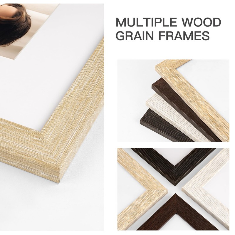 - Design: Our 8x10 inch picture frames matted to 5x7 photo come with elegant natural wood texture molding. Pre-installed sawtooth hooks and easel back for hassle-free displaying on table top and wall in both horizontal and vertical. There are 4 different colors to choose from, Suitable for homes, offices, or any living space, these frames add a touch of sophistication to your decor.
