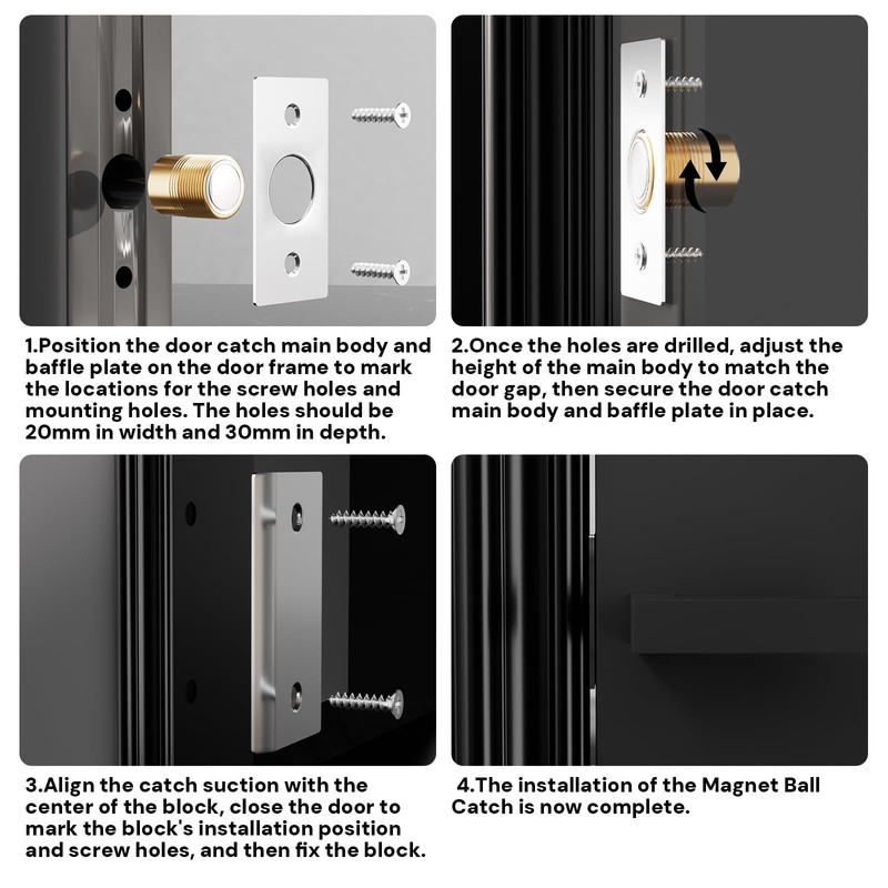 - 4. Stylish, durable and discreet: no bulky metal balls or mechanical parts — clean, modern look that pairs perfectly with doors. Reduced wear extends service life, surpassing traditional spring locks. Ideal for homes, offices and commercial spaces.