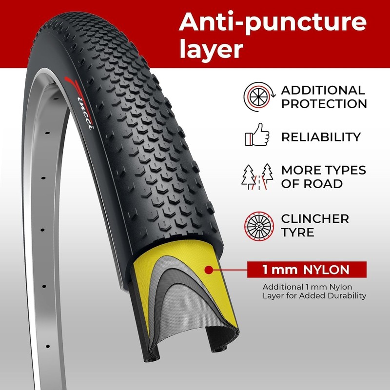 - Durable & Lightweight with Puncture Protection: Weighing 440 grams each, these foldable tires are made from a nylon and rubber compound with a Kevlar wire bead for flexibility. A 1mm nylon protection layer resists cuts, extending lifespan and ensuring worry-free cycling.