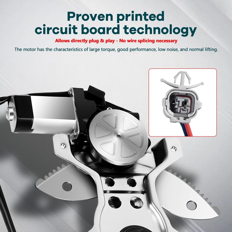 - REINFORCED COMPONENTS: The window motor Front Left and Front Right is made of thickened steel wire and steel plate, which has a stronger load-bearing capacity, is tough and firm and runs smoothly.