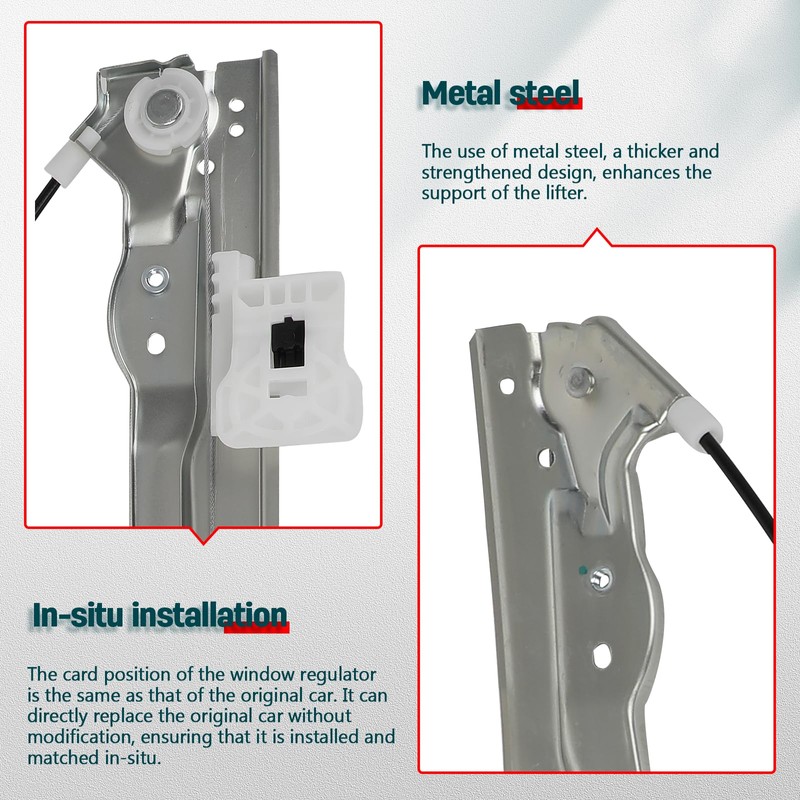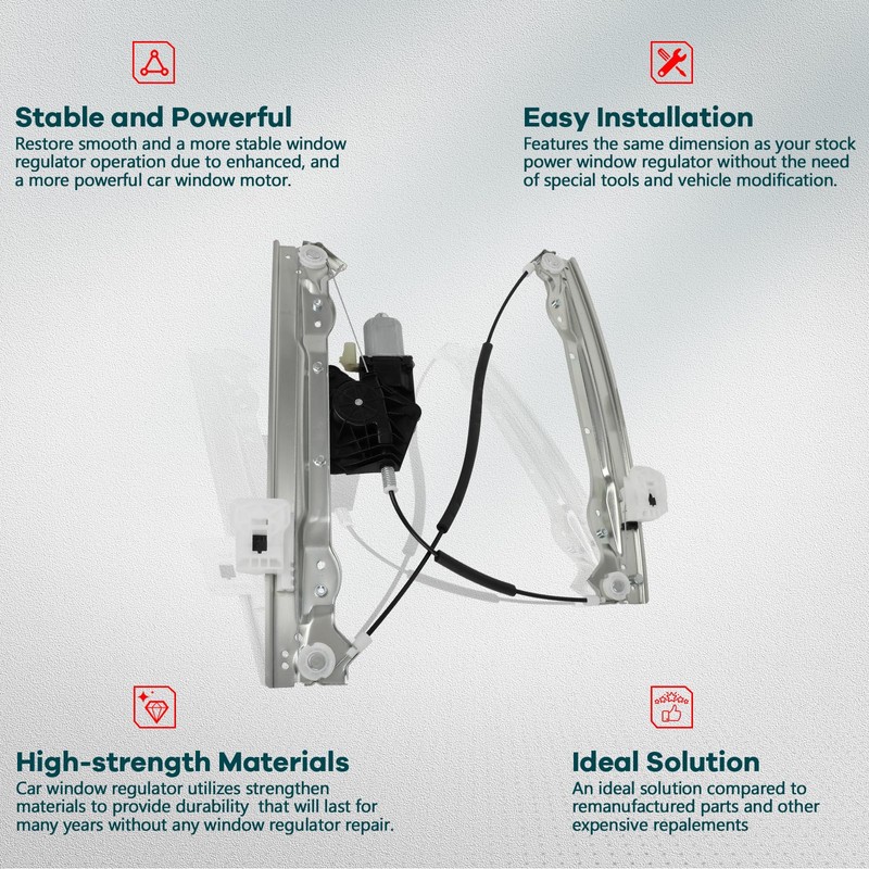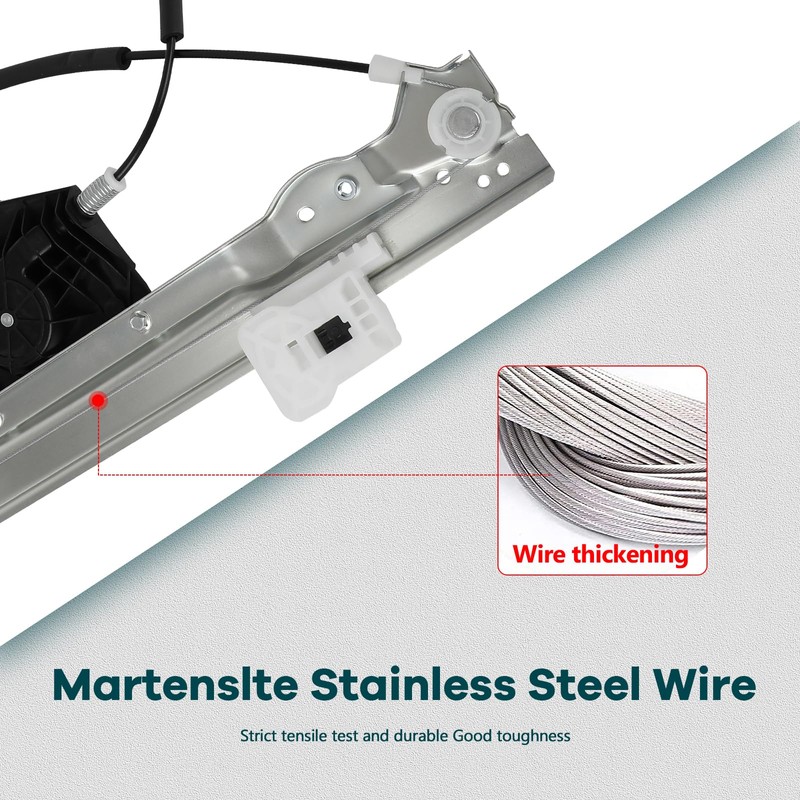 - REINFORCED COMPONENTS: The window motor Front Left Driver Side is made of thickened steel wire and steel plate, which has a stronger load-bearing capacity, is tough and firm and runs smoothly.