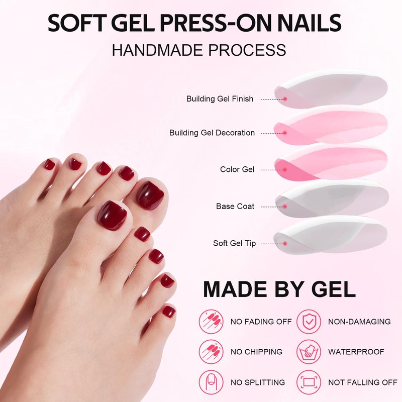 Findigit Press on Toenails Short, Toenail Press Ons Square for Girl Women, Press on Toe Nails with Glue, Fake Toenails in 16 Sizes- 32 Toenails Kit,Red