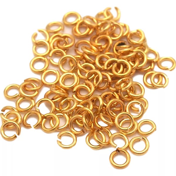 - This is a set of 100 gold color plated round unsoldered open jump rings