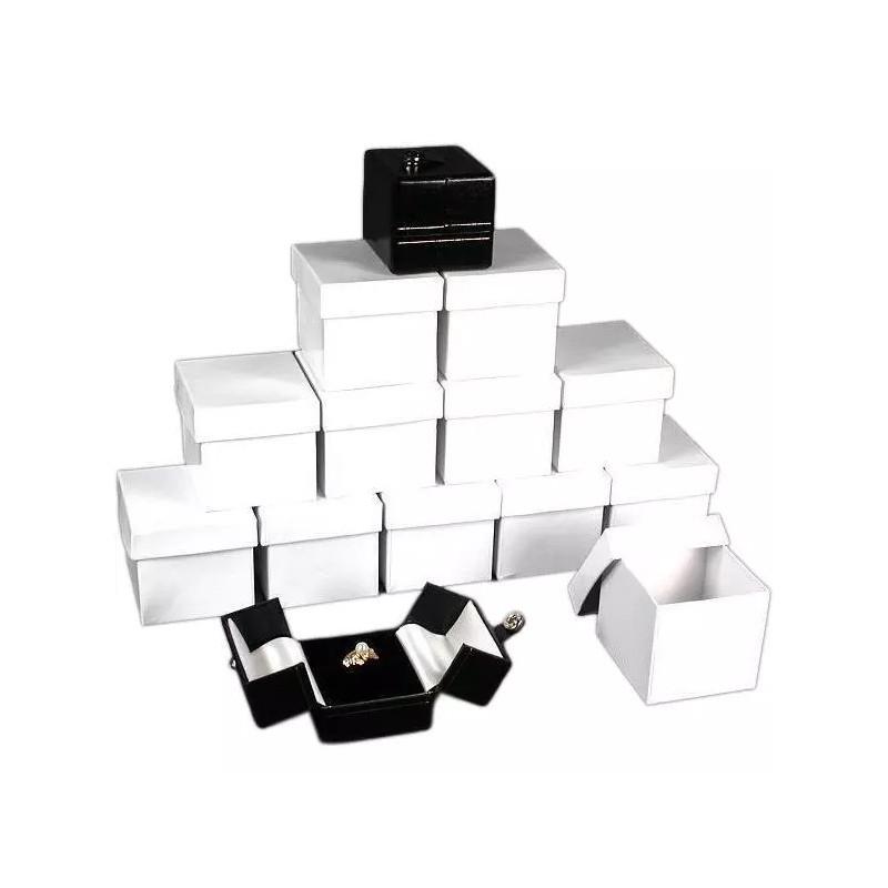 12 Large Ring Gift Boxes Black White Snap Lid Display
