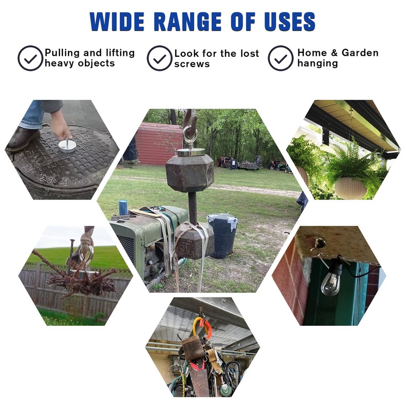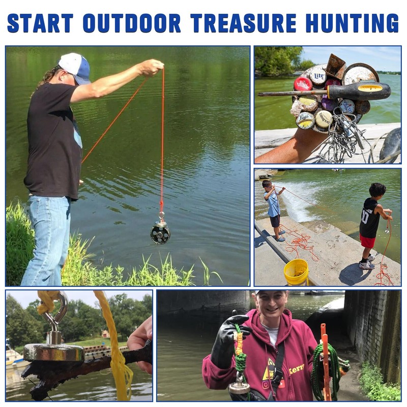 - 【VERSATILE USE】 - This fishing magnet is ideal for fishing, lifting, hanging. Find lost treasures in rivers, wells or ponds. It’ll pull up to 700 lbs from under water! You can also use it to collect nails, coin, hooks, screw, knife, or needles in sand beach, lawn, and house.