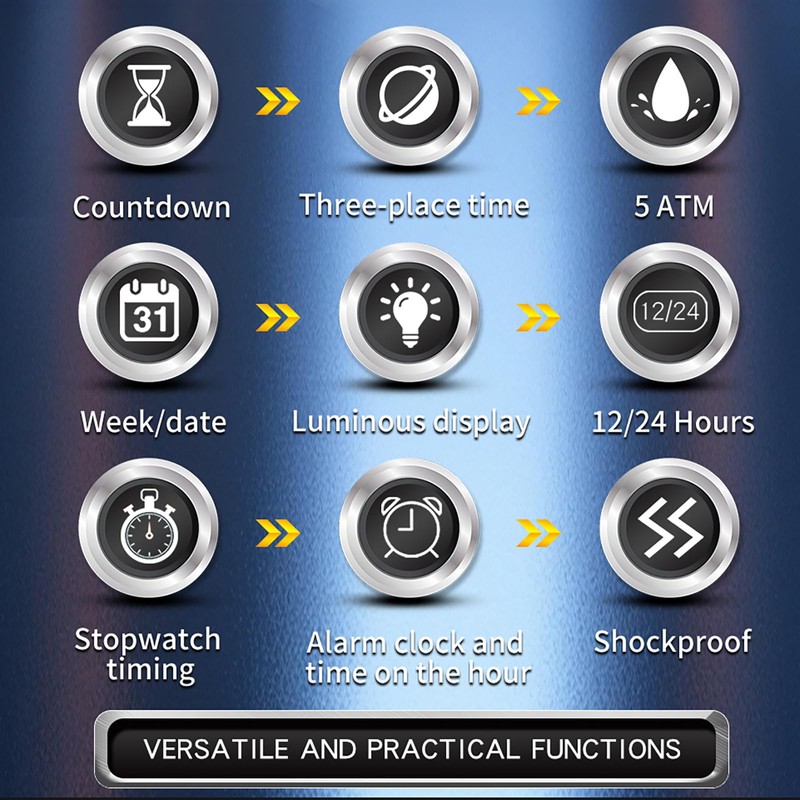 - 5 ATM Waterproof : Digital watch men waterproof,wash hand,get wet in the rain and so on,it can satisfy all the daily needs(Warnning:No shower,sunna,diving,water-related work.Please DO NOT press any buttons underwater)