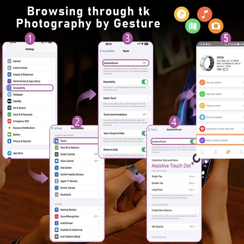 • Remote photography and tk: control the smart ring with simple gestures to take photos remotely. Plus, you can browse tk and be entertained – all right from your finger.