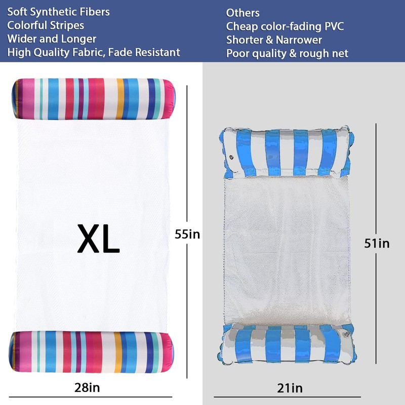 - Package Included:Float Hammock,Header Pillow,Footer Pillow,Inflator Pump
