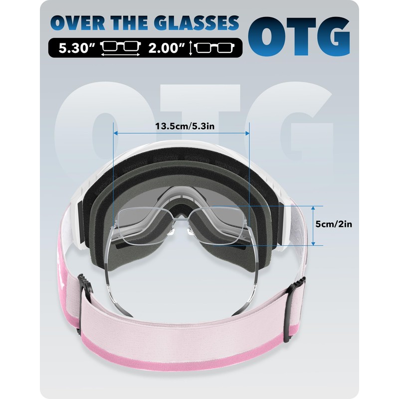 - OTG design: ski goggles that can be worn over the glasses, also suitable for skiers who wear glasses, they are perfect for skiing, snowboarding, ice skating, climbing, motorcycle/mountain biking, driving at high altitudes, bungee jumping and other sports.